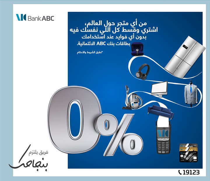 قسط مشترياتك مع بطاقات بنك ABC الائتمانيه بدون فوائد