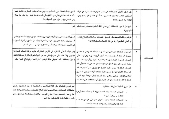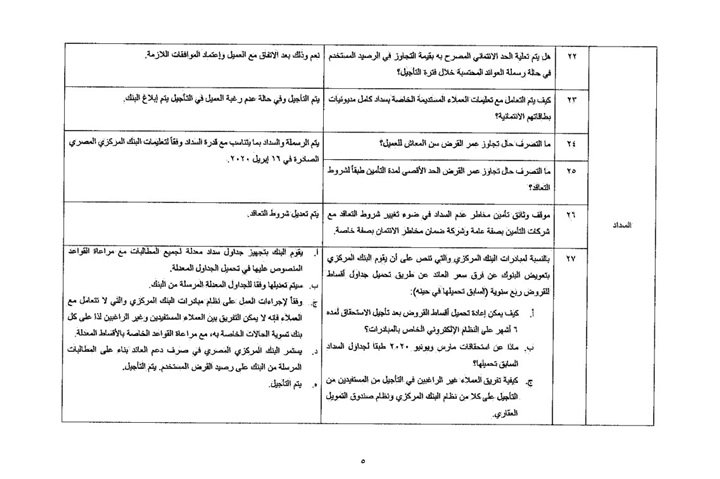 الاستفسارات الواردة إليه من البنوك خلال الفترة السابقة، بشأن تأجيل الاستحقاقات الائتمانية