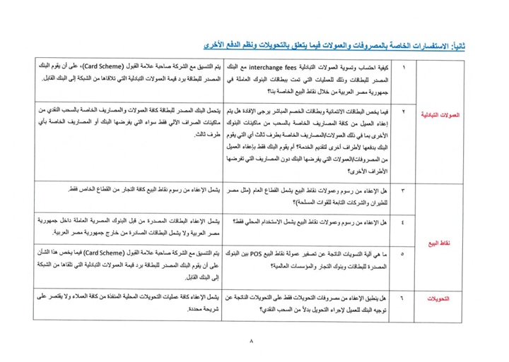الاستفسارات بهدف توحيد آلية التطبيق بكافة بنوك القطاع المصرفي.