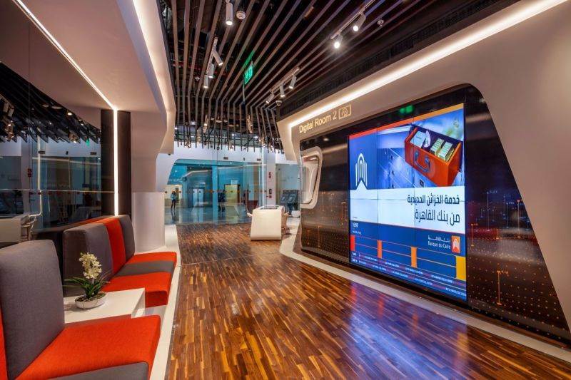 حصلت بوابة «بنكي» على صور أول فرع رقمي لبنك القاهرة بمول مصر بمدينة السادس من أكتوبر.