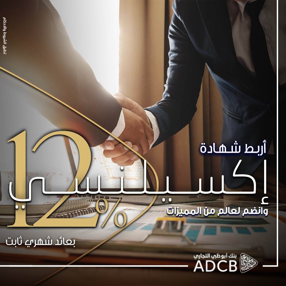 تفاصيل شهادة اكسلنسي من بنك أبو ظبي التجاري بعائد شهري 12%