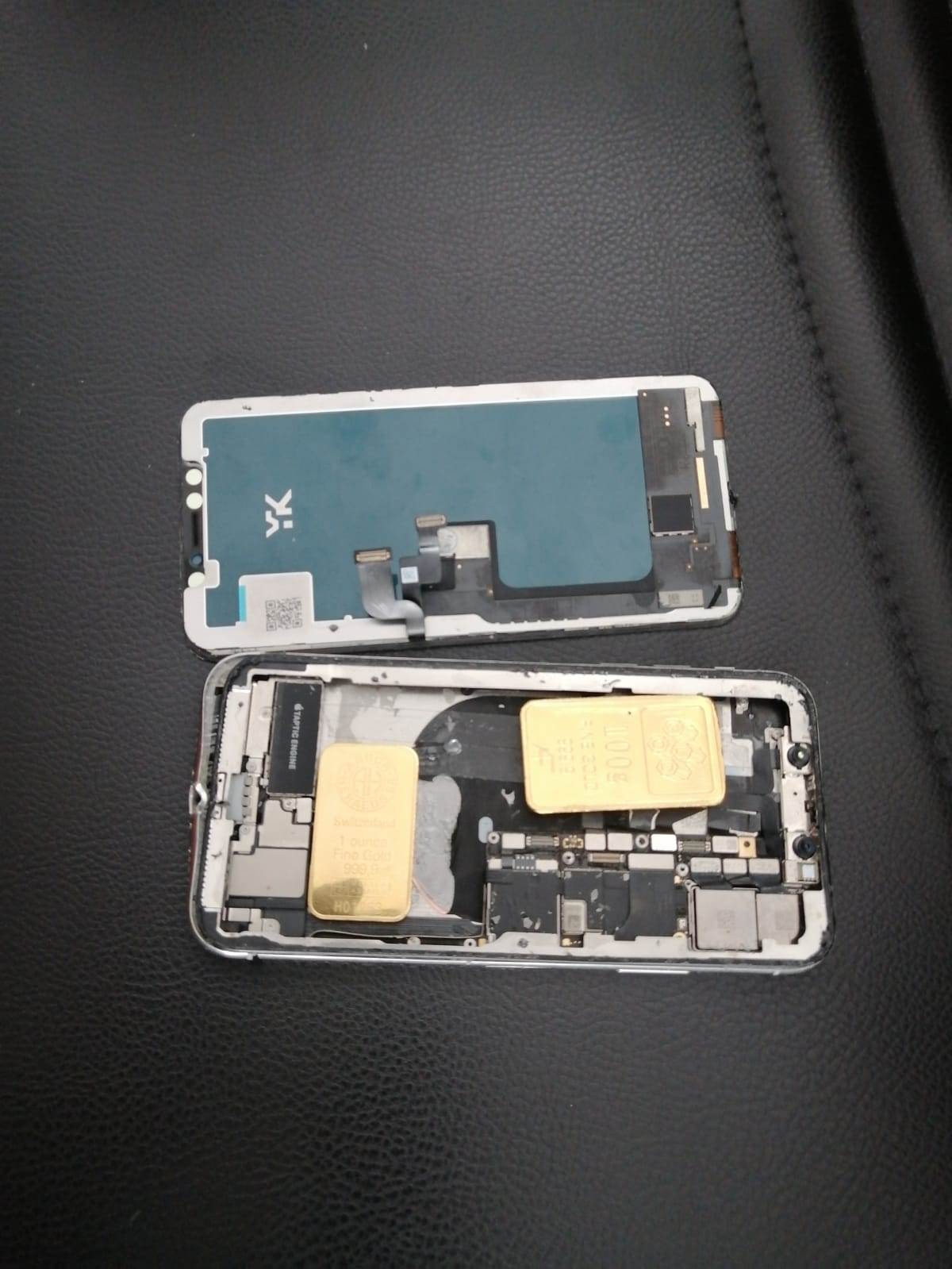 فى المحاولة الأولى واثناء إنهاء اجراءات الركاب القادمين من أبوظبى على رحلة خطوط طيران العربية اشتبه جورج شاكر رئيس الوردية فى الراكب أ . س . ح مصرى الجنسية . وبالعرض على سامح شرباش مدير الجمرك قام بتشكيل لجنة من عاصم فتحى رئيس قسم الوديعة ومصطفى الصالحى مأمور الحركة لتفتيش حقائب الراكب وتفتيشه ذاتيا فلم يتبين وجود شيئ فى الحقائب وتبين وجود 2 هاتف محمول بالتفتيش الذاتى للراكب فتم تمررهم على جهاز الفحص بأشعة X-RAY بمعرفة أحمد كامل مأمور الفحص فتلاحظ وجود أجسام معتمة وكثافات بداخل أحد الهاتفين ، بفتحه تبين وجود 2 سبيكة ذهبية الأولى بوزن 100جرام تقريبا والأخرى بوزن 30 جرام تقريبا بوزن إجمالى للسبيكتين 130جرام .