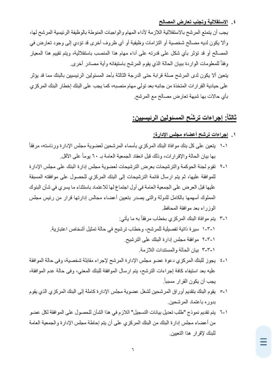 البنك المركزي يصدر تعليمات جديدة لرؤساء وأعضاء مجالس إدارات البنوك