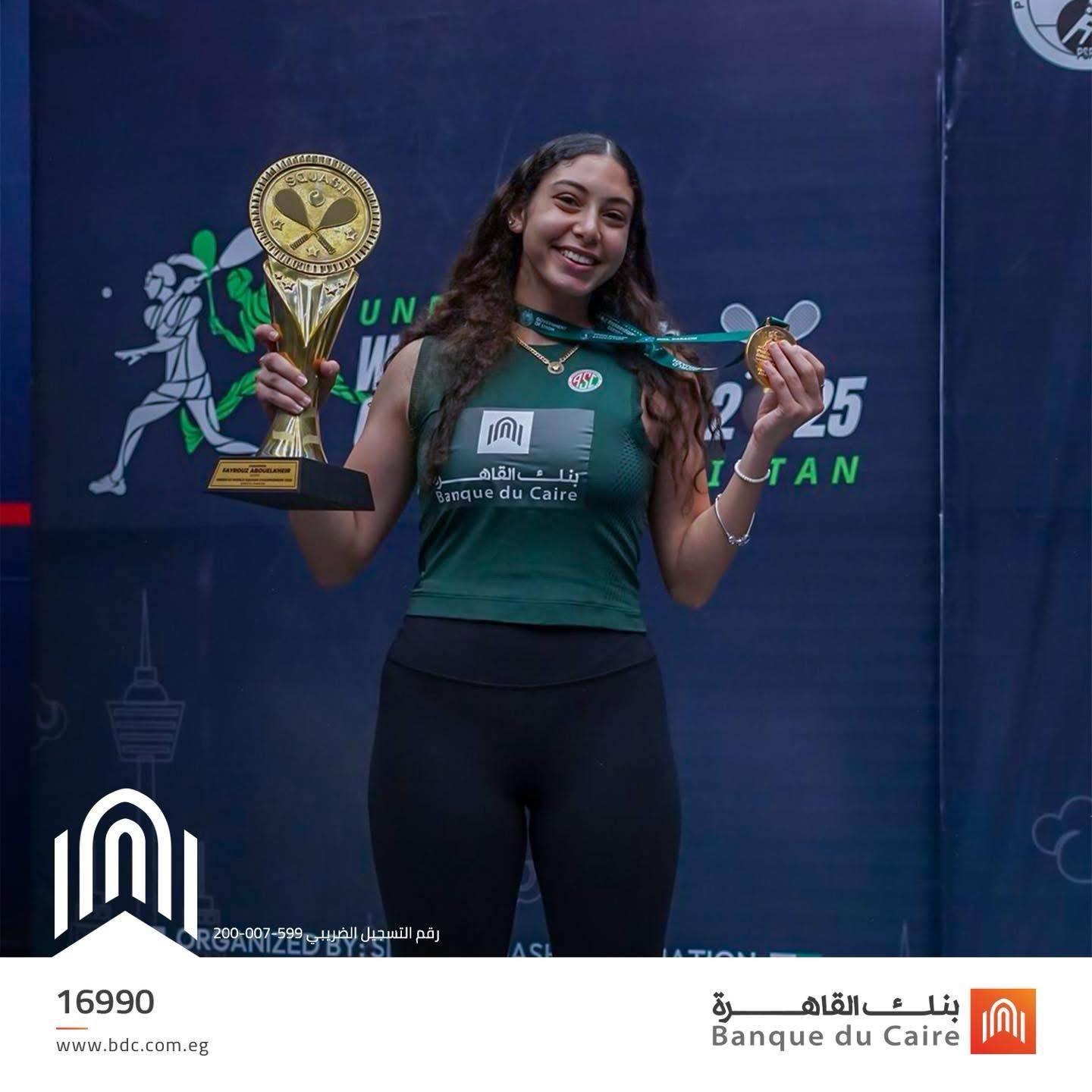 بنك القاهرة يهنئ فيروز أبو الخير لفوزها بلقب بطلة العالم تحت 23 سنة في باكستان