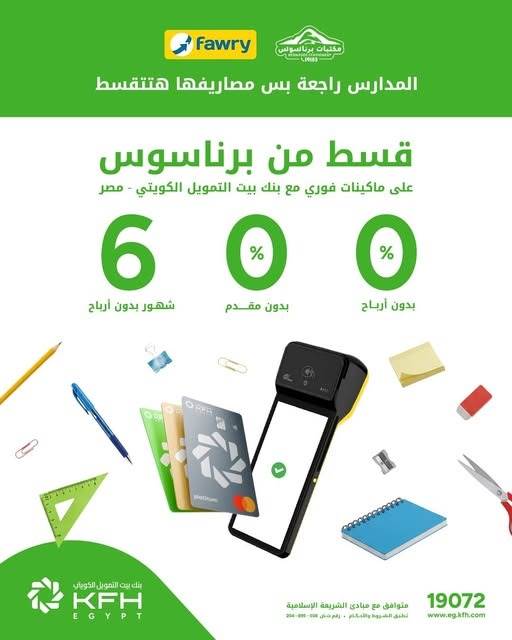 يواصل بنك بيت التمويل الكويتي – مصر (KFH-Egypt) إطلاق العروض والخدمات المصرفية التي تمنح عملاءه مزيدًا من المرونة في التعاملات المالية. وفي إطار هذه الجهود، يقدم البنك عرضًا خاصًا يتيح لحاملي بطاقاته الائتمانية إمكانية تقسيط قيمة المشتريات عند الدفع من خلال فوري بجميع فروع برناسوس بدون أرباح، مما يسهل على العملاء إدارة مدفوعاتهم بطريقة ميسرة وآمنة.