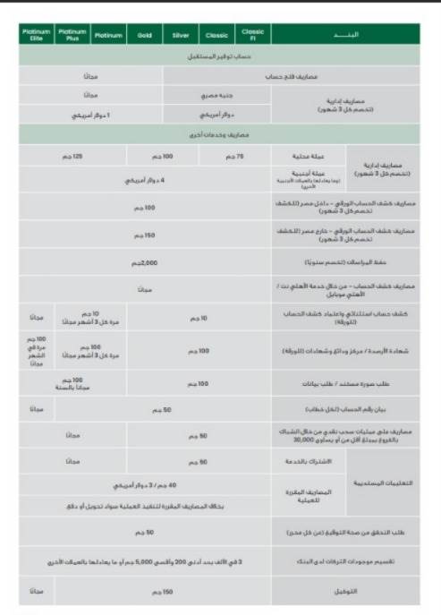 - مصاريف كشف الحساب من الأهلي نت والأهلي موبايل : مجانا