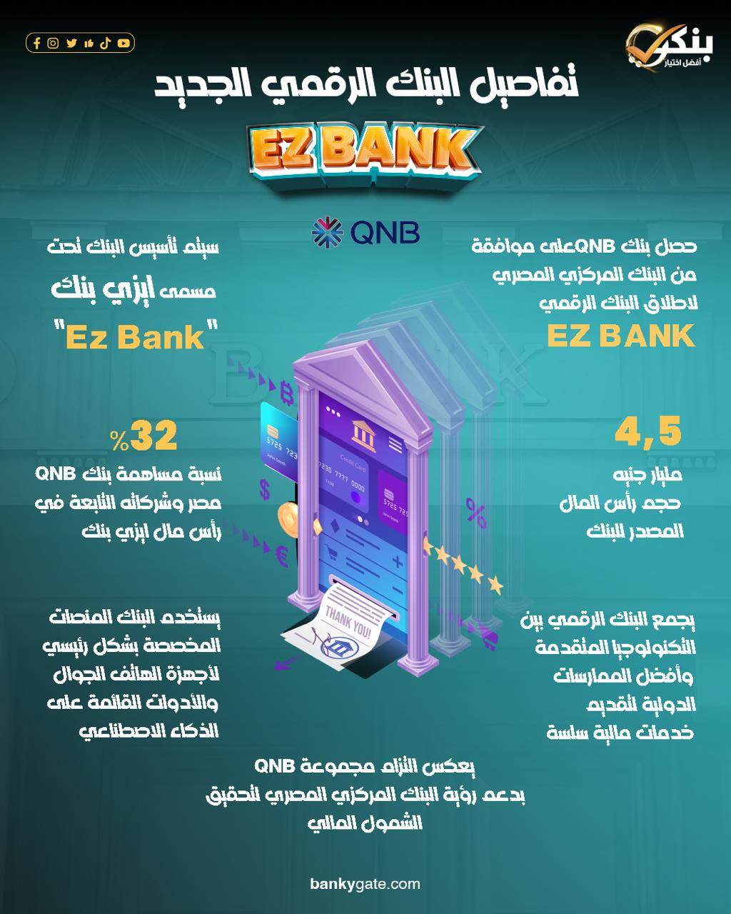 جدير بالذكر أن مجموعة بنك قطر الوطني (QNB) أعلنت عن حصولها على موافقة البنك المركزي المصري على ترخيص خاص بإنشاء بنك رقمي جديد يحمل اسم (ezbank).