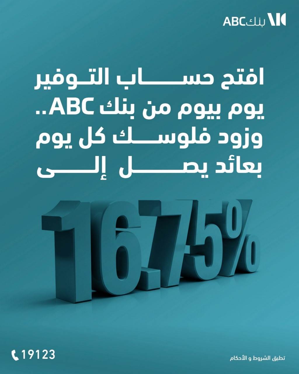 بنك ABC يتيح حساب التوفير "يوم بيوم" بفائدة تصل إلى 16.75%