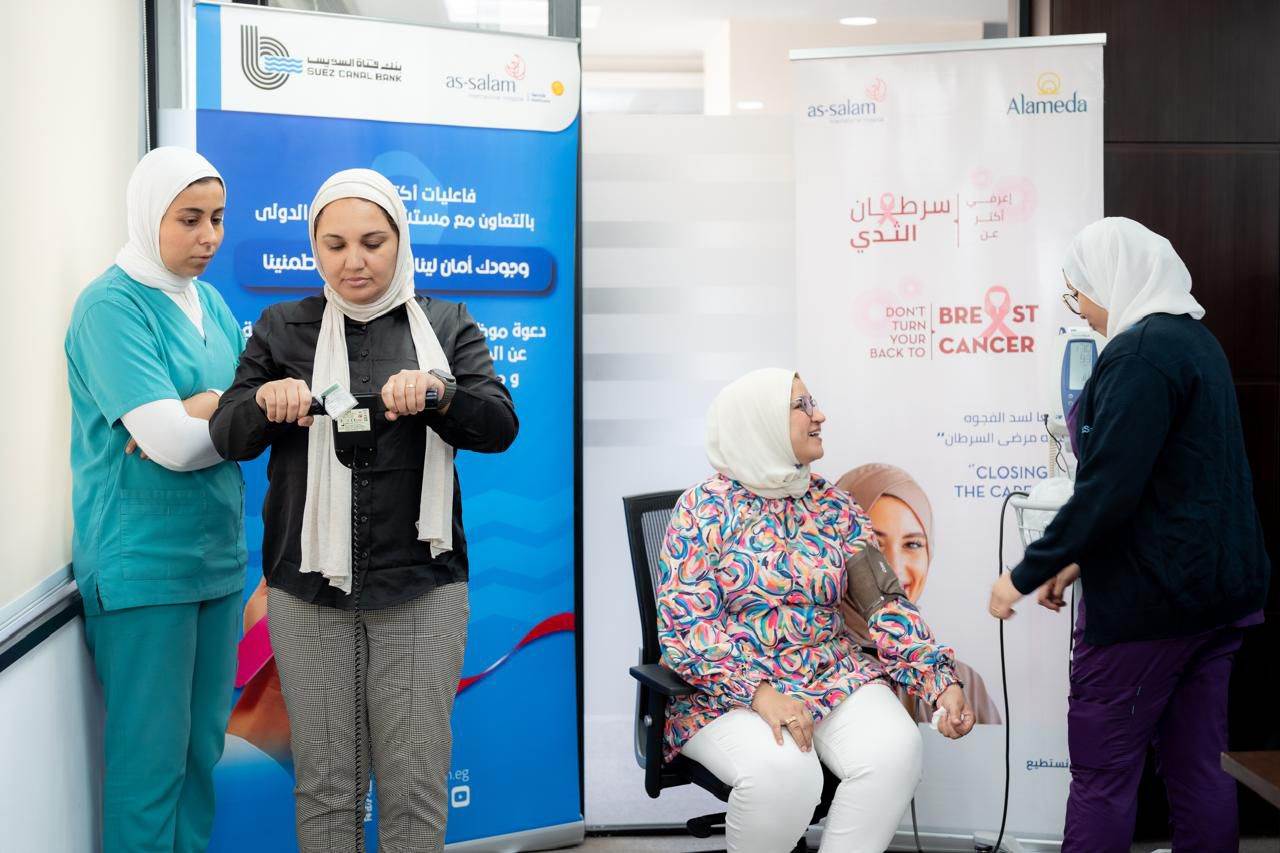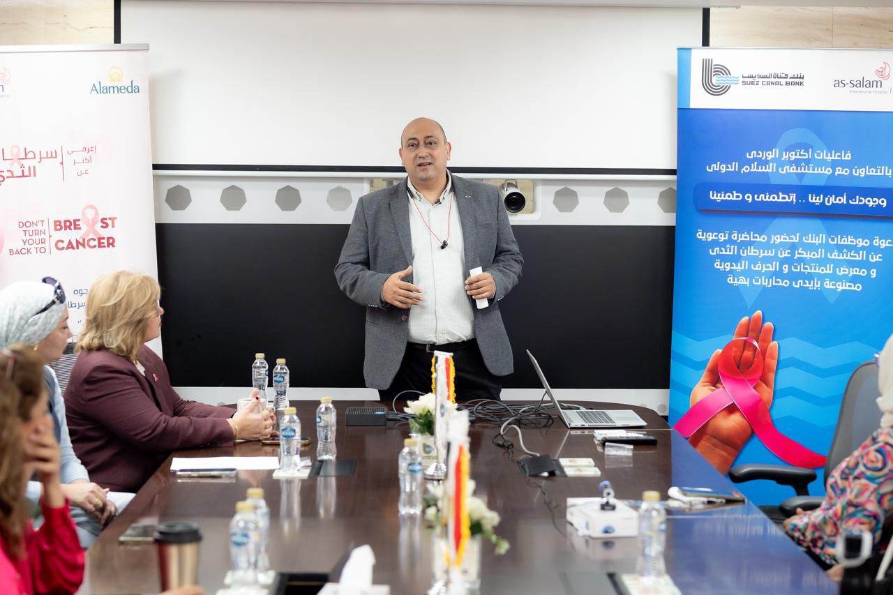 نظم بنك قناة السويس يوما توعويا لموظفاته، بالتعاون مع مستشفى السلام الدولي، وذلك بالتزامن مع فعاليات "أكتوبر الوردي" شهر التوعية بسرطان الثدي؛ بهدف نشر الوعي بأهمية الكشف المبكر ودوره في الوقاية والعلاج.