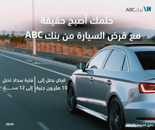 بنك ABC يتيح تمويل السيارات حتى 10 ملايين جنيه لمدة 12 سنة