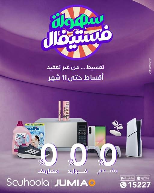تقدم شركة "سهولة" عرض تمويلي حصري بالتعاون مع "Jumia"؛ حيث تتيح لعملائها فرصة شراء كافة المنتجات التي يرغبون في اقتنائها من موقع Jumia، دون الحاجة لدفع مقدم أو تحمل أي فوائد أو مصاريف إدارية، في فرصة استثنائية سارية حتى 13 نوفمبر 2025.