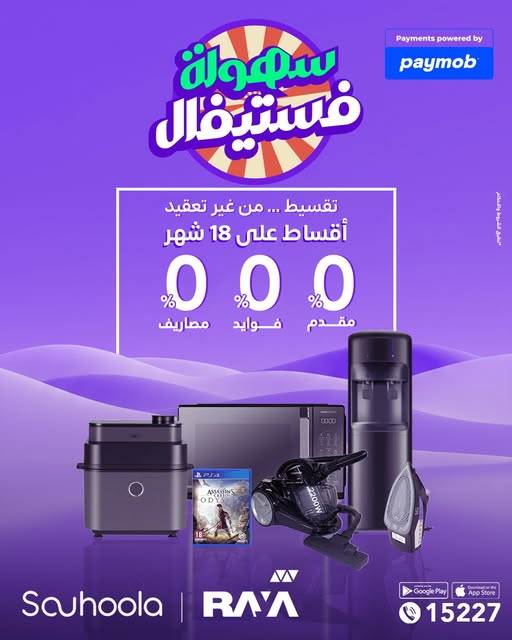 تتيح شركة "سهولة" للتمويل الاستهلاكي، بالتعاون مع "Raya" عرض حصري ليوم واحد فقط؛ حيث يمكن للعملاء شراء الأجهزة المنزلية والتمتع بالتقسيط حتى 18 شهرا، وذلك بدون مقدم أو فوائد أو مصاريف إدارية، وذلك ضمن فعاليات مهرجان "سهولة فستيفال".