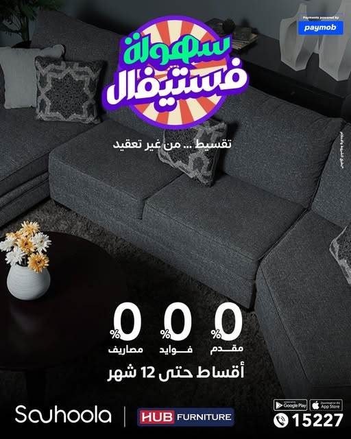 قدّمت شركة سهولة للتمويل الاستهلاكي عرضًا مميزًا يتيح للعملاء شراء أثاث منزلهم من Hub Furniture بسهولة وبأقساط تصل حتى 12 شهرًا، دون الحاجة لدفع أي مقدم أو فوائد أو مصاريف إدارية.