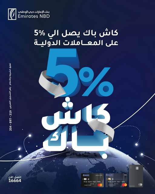 5% كاش باك على المعاملات الدولية لـ عملاء بنك الإمارات دبي الوطني - مصر