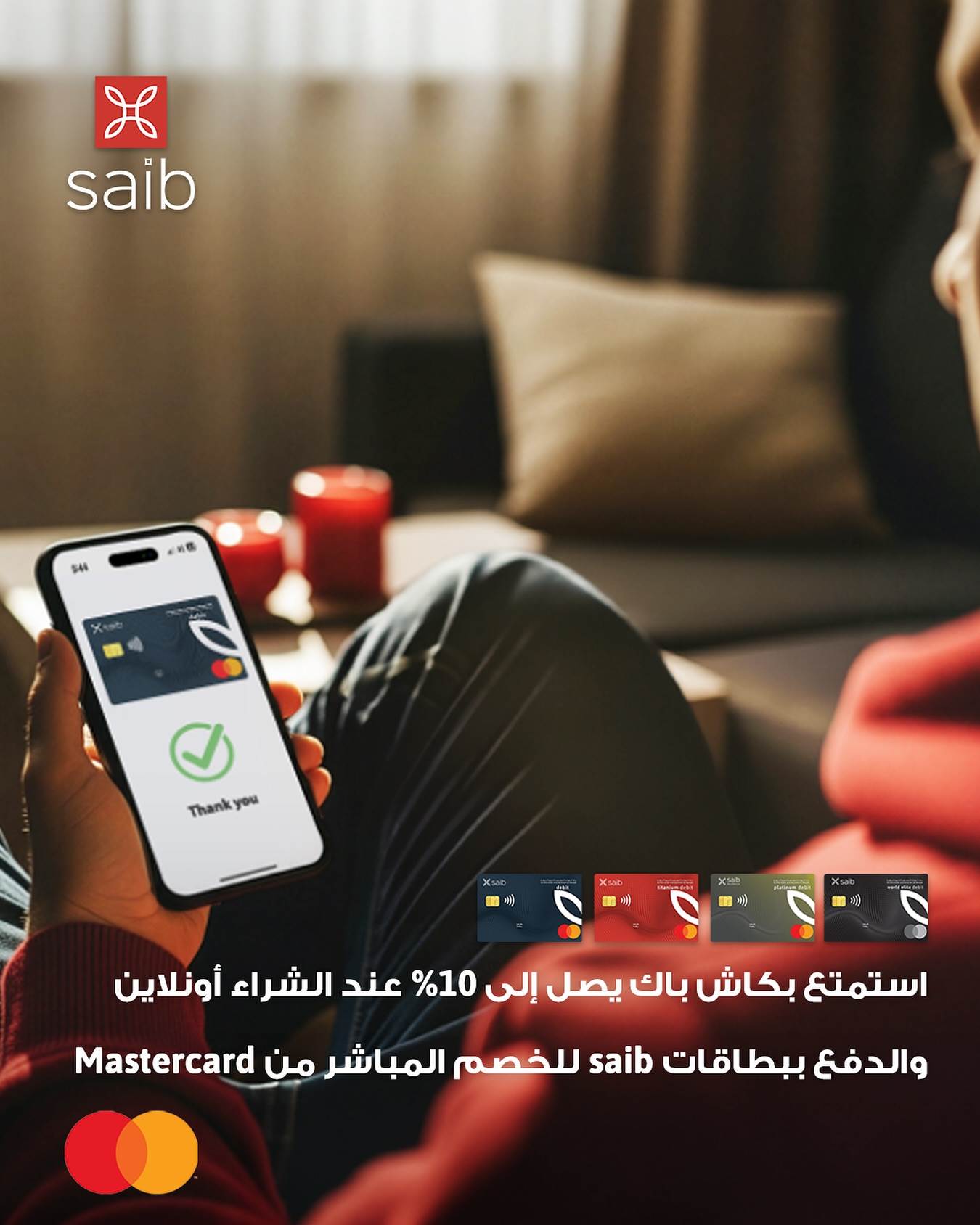 يتيح بنك saib لعملائه فرصة مميزة لشراء جميع المنتجات المختلفة عبر الإنترنت محليًا باستخدام بطاقات الخصم المباشر من Mastercard، مع الاستفادة من عرض استرداد نقدي (كاش باك) يصل إلى 10% من قيمة المعاملات، مما يجعل تجربة التسوق أكثر سهولة ومتعة ويوفر قيمة إضافية لكل عملية شراء.