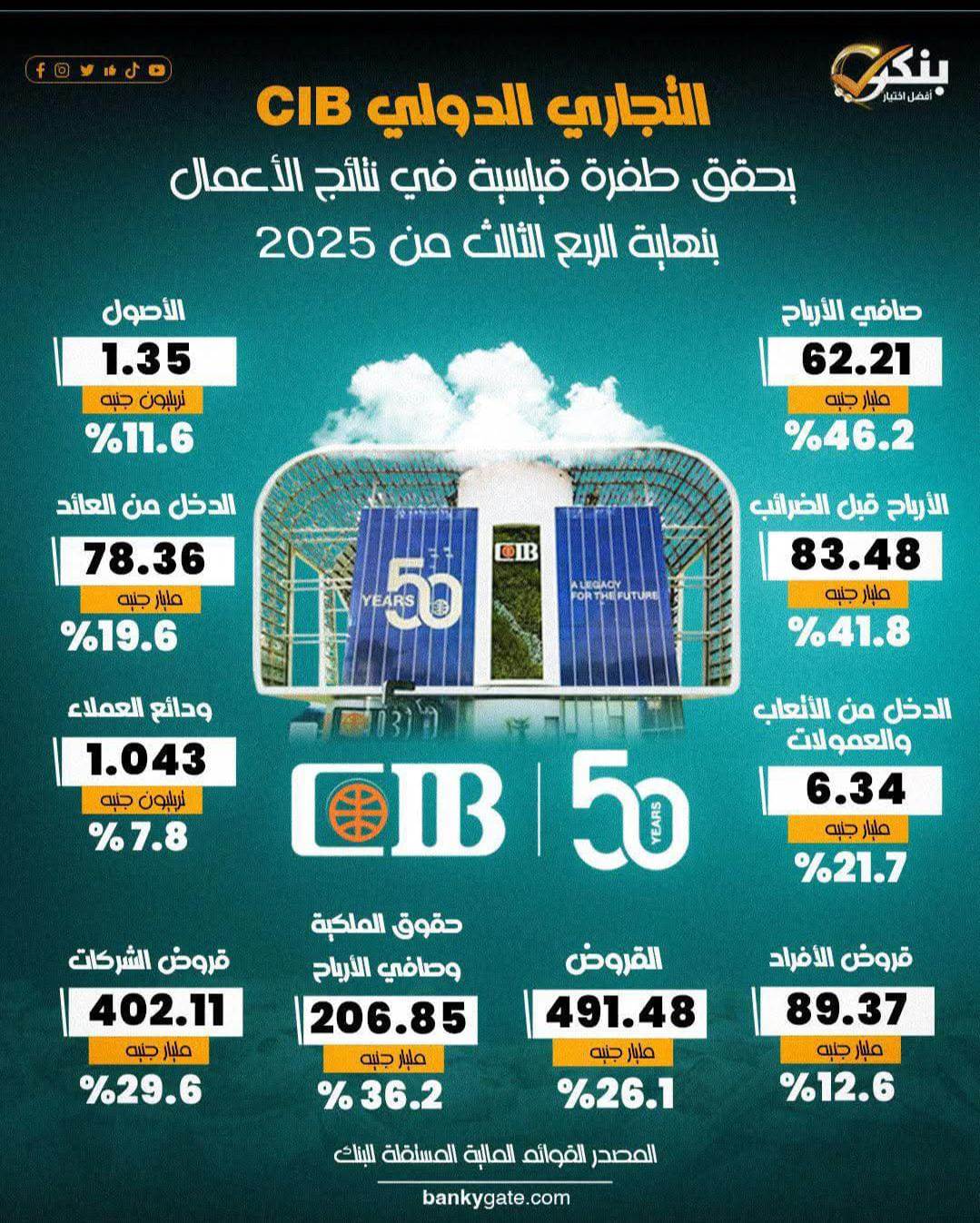 ويؤكد حصاد عام 2025 أن البنك التجاري الدولي CIB لم يحقق فقط نموًا ماليًا قويًا، بل رسّخ مكانته كأحد أهم محركات التنمية الاقتصادية والتحول الرقمي والاستدامة في القطاع المصرفي المصري والإقليمي.