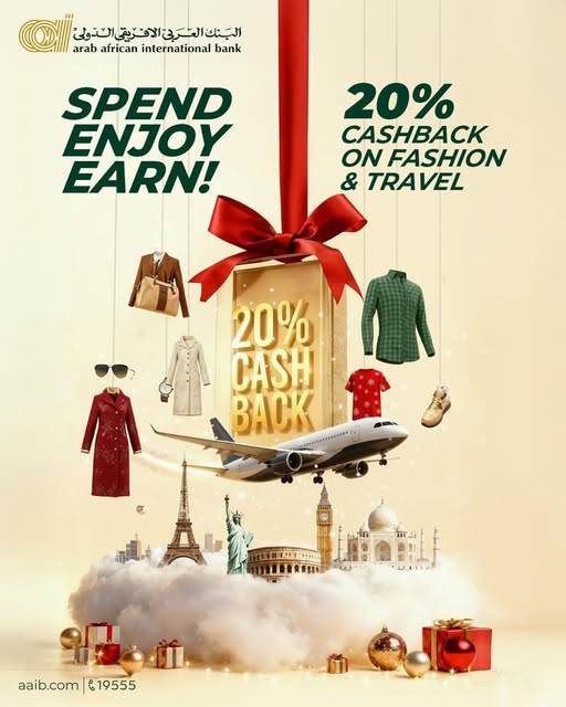 البنك العربي الافريقي الدولي يتيح لعملائه كاش باك 20% على السفر والسياحة والأزياء.. "المزايا والتفاصيل"