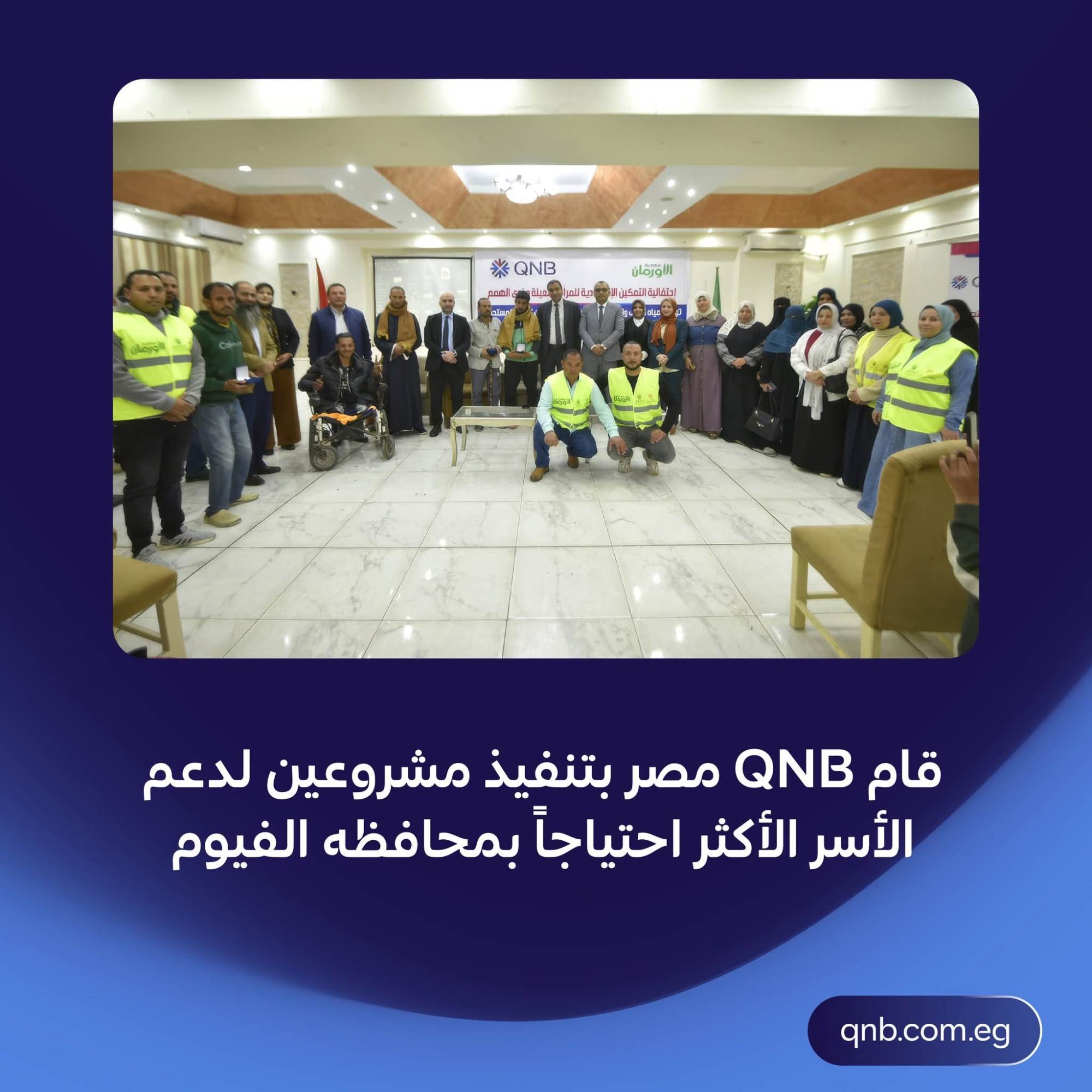 QNB مصر يدعم التمكين الاقتصادي وتحسين مستوى المعيشة للأسر الأولى بالرعاية بمحافظة الفيوم