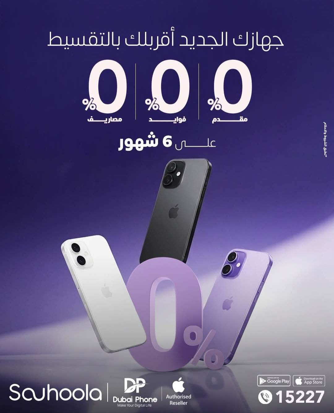 تتيح شركة سهولة لعملائها تقسيط شراء الموبايلات من دبي فون لمدة تصل إلى 6 أشهر بدون مقدم، وبدون مصاريف إدارية أو فوائد، بما يوفر للعملاء مرونة أكبر في إدارة مشترياتهم وتسهيل سدادها وفق احتياجاتهم المالية.
