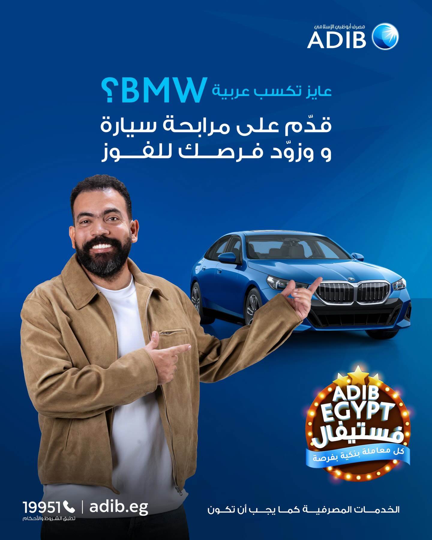 أطلق مصرف أبوظبي الإسلامي-ADIB حملة ""ADIB-Egypt Festival تحت شعار “كل معاملة بفرصة”؛ حيث يمنح البنك عملائه فرصة الفوز بسيارة أحلامهم BMW الفئة الخامسة عند التقديم على مرابحة سيارة أو القيام بأي معاملة مصرفية خلال الحملة، حيث أن كل معاملة تمنح فرصا للفوز بجوائز أسبوعية مميزة تشمل سيارة BMW، رحلة عمرة، أو قسائم شراء بقيمة 25,000 جنيه، مع إمكانية الفوز بالجائزة الكبرى وهي سيارة BMW الفئة الخامسة.