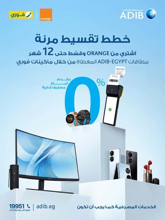 مصرف أبوظبي الإسلامي - مصر يتيح تقسيط منتجات "Orange" بدون فوائد حتى 12 شهرا