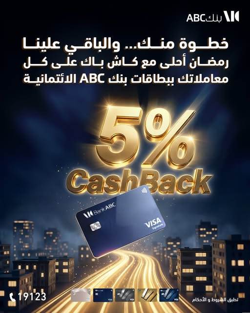 بنك ABC مصر يتيح لعملائه 5% كاش باك على المشتريات مع إصدار مجاني للبطاقات