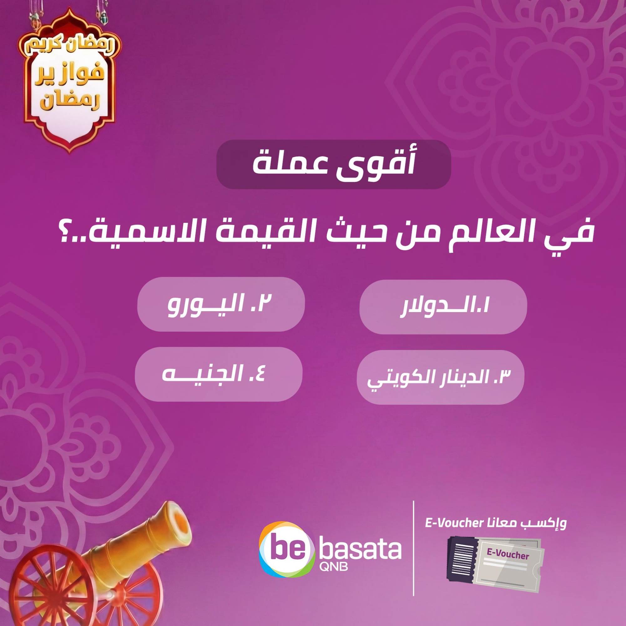 أعلنت QNB Bebasata عن عودة فوازير رمضان خلال الشهر الكريم، في إطار حرصها على تعزيز التفاعل مع جمهورها عبر منصات التواصل الاجتماعي، وتقديم تجربة ترفيهية مميزة مصحوبة بجوائز يومية.