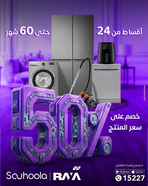 - خصم يصل إلى 50% على سعر الأجهزة المنزلية.