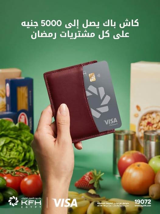 يتيح بنك بيت التمويل الكويتي- مصر لعملائه استخدام بطاقة Visa الائتمانية عند التسوق لمشتريات رمضان طوال الشهر من أي مكان، والاستفادة من كاش باك بنسبة 5% يصل إلى 5000 جنيه.