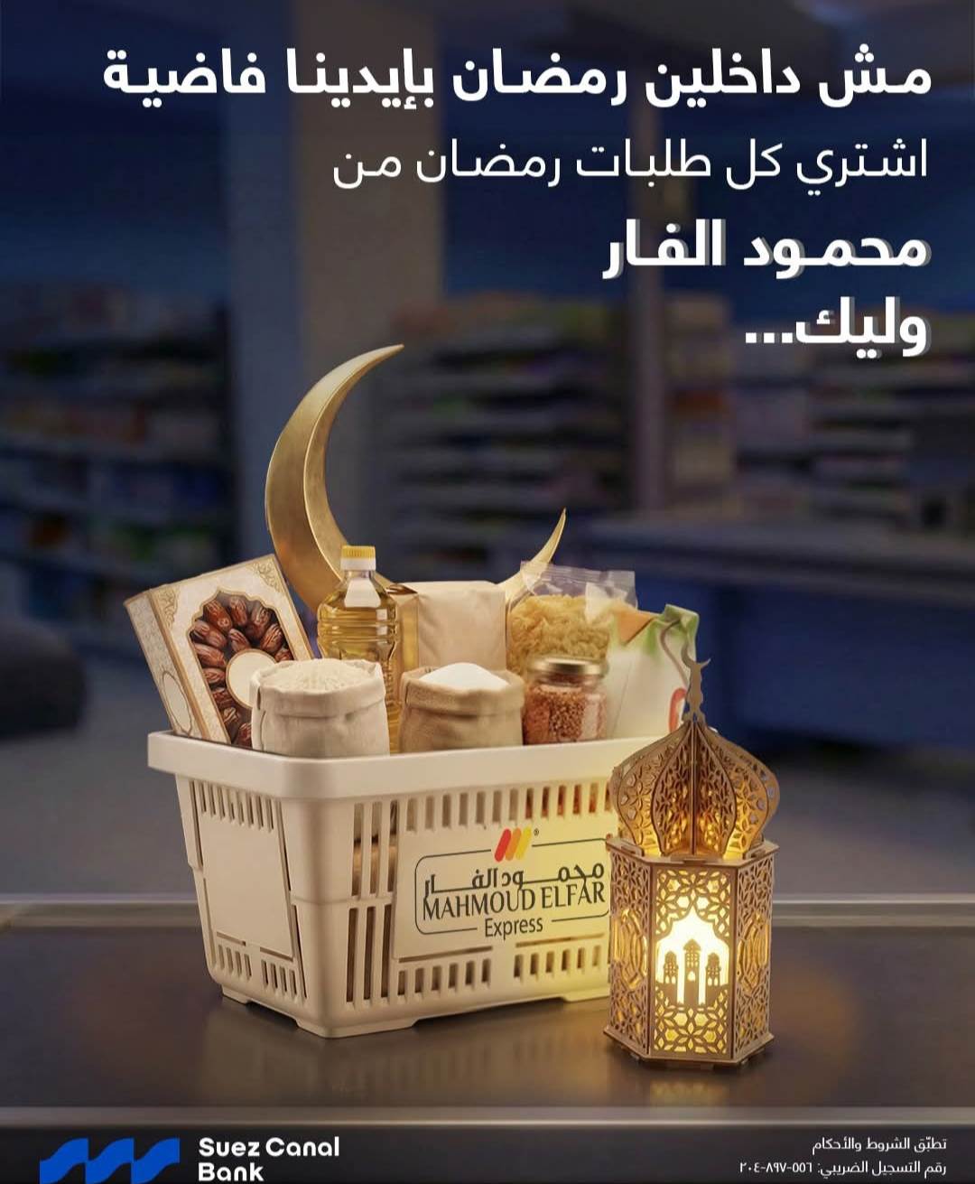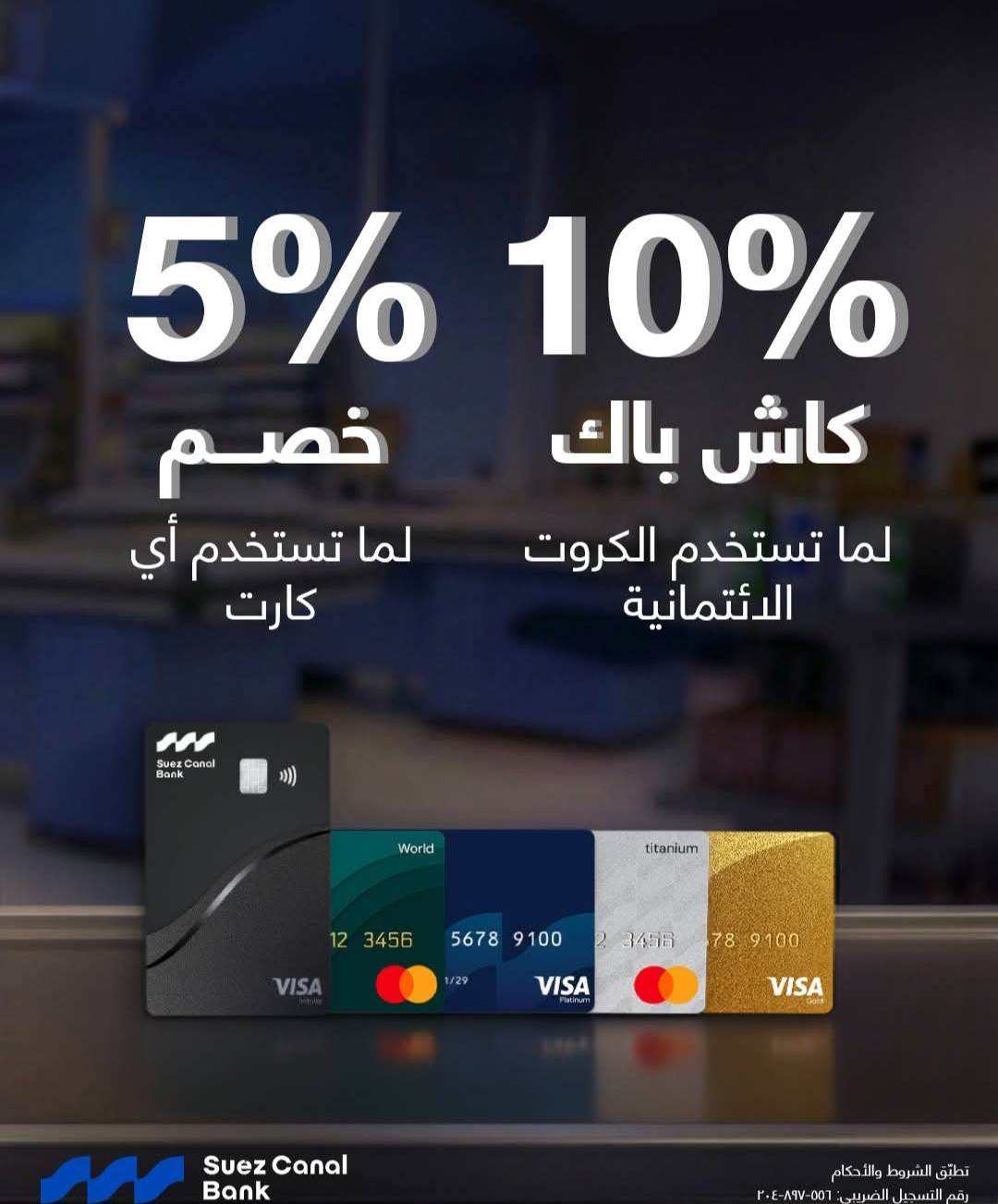 يتيح بنك قناة السويس لعملائه بمناسبة شهر رمضان المبارك الاستفادة من عروض مميزة، حيث يمكنهم الحصول على 10% كاش باك عند الدفع ببطاقات البنك الائتمانية عند شراء احتياجاتهم من سوبر ماركت محمود الفار، بالإضافة إلى خصم 5% عند استخدام أي بطاقة.