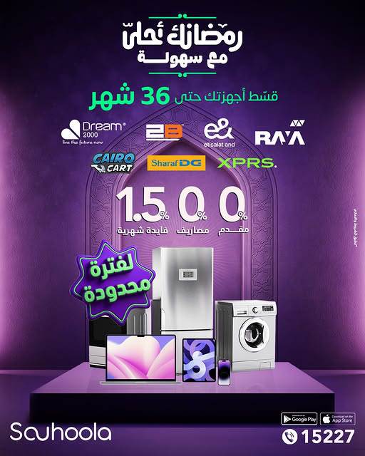- كما يمكن الاستفادة من العرض عبر الفروع أو الأونلاين لدى المتاجر التالية: Dream2000 – 2B – Raya - Cairo Cart – Sharaf DG – XPRS.