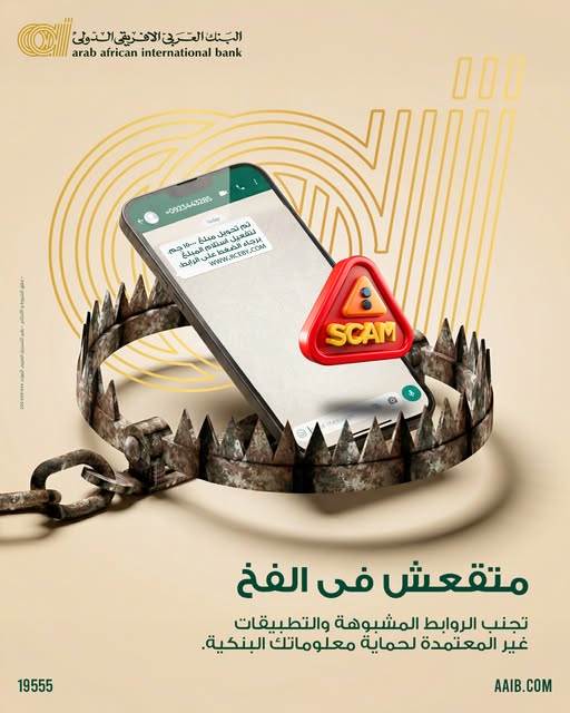 يؤكد البنك العربي الافريقي الدولي أن حماية الحساب تبدأ بوعي العميل، داعيا الجميع إلى توخي الحذر والإبلاغ الفوري عن أي محاولات احتيال، لضمان تجربة مصرفية آمنة ومستقرة في عالم رقمي سريع التطور.