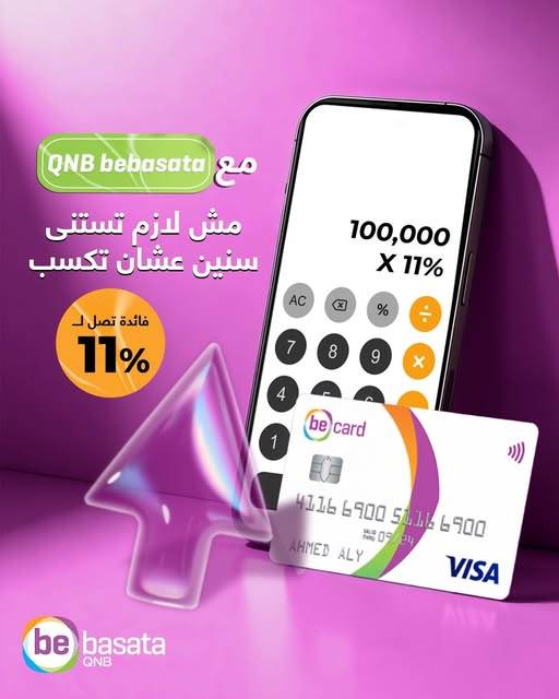 تتيح QNB bebasata لعملائها إمكانة استثمار أموالهم بمرونة وبدون ربط طويل الأجل، ابتداءً من 1000 جنيه ولمدد تتراوح بين شهر و6 شهور، بعائد ثابت يصل إلى 11% حسب المدة المختارة (شهر – 3 أشهر – 6 أشهر)؛ حيث تتميز الوديعة انها متاحة بالجنيه المصري، مع إمكانية التجديد التلقائي، وكسر الوديعة في أي وقت قبل الاستحقاق (دون صرف العائد)، مع عدم إتاحة الكسر الجزئي، وأيضًا إمكانية تسمية الوديعة بما يعكس أهدافك الادخارية.