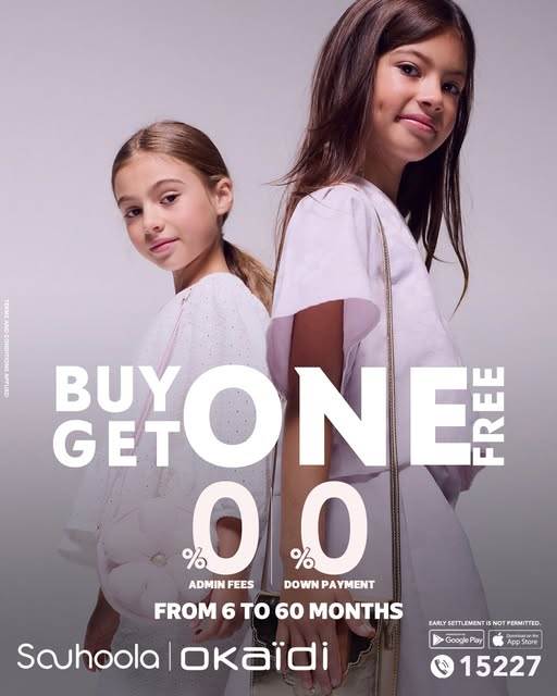 - احصل على عرض اشترِ قطعة واحصل على الثانية مجانًا عند التسوق من Okaidi.