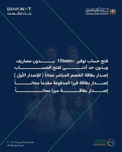 وأعلن بنك نكست عن إتاحة فتح حساب شمول مالي مجاني للشباب بداية من سن 15 عاما، دون الحاجة إلى ولي أمر، وبدون رسوم أو حد أدنى لفتح الحساب، في خطوة تعكس التزام البنك بدعم فئة الشباب وتمكينهم ماليًا.
