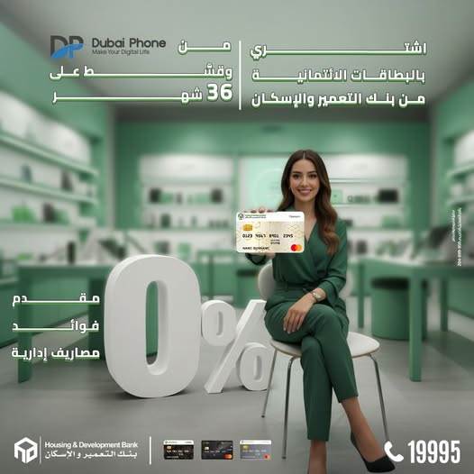 بنك التعمير والإسكان يتيح تقسيط المشتريات من Dubai Phone بدون فوائد أو مقدم أو مصاريف حتى 36 شهر