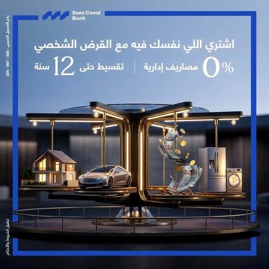 بنك قناة السويس يتيح القرض الشخصي بدون مصاريف إدارية وبفترة سداد تصل لـ 12 سنة