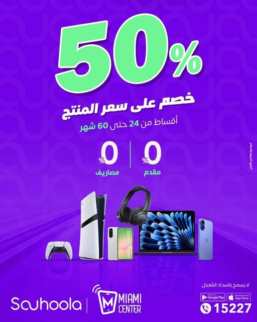 "سهولة" تتيح تقسيط المشتريات من "Miami center" بخصم 50% حتى 60 شهرا