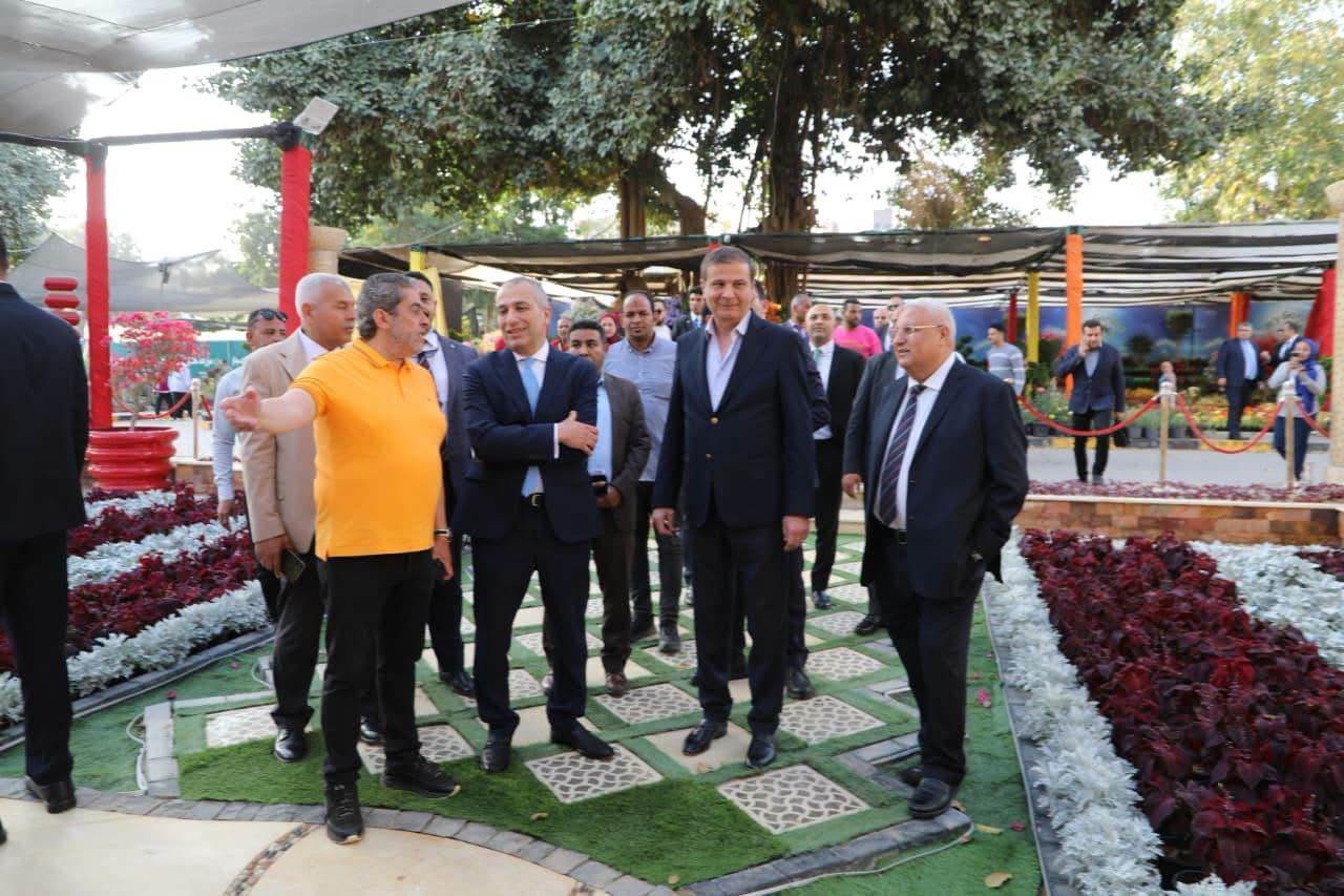 علاء فاروق والرئيس التنفيذي للبنك الزراعي المصري يتفقدان معرض زهور الربيع بالدقي