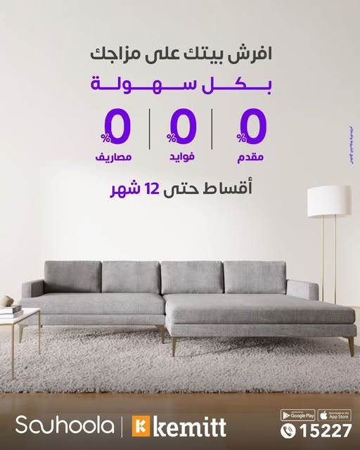- تقسيط مشتريات فرش المنزل من Kemitt حتى 12 شهرا.