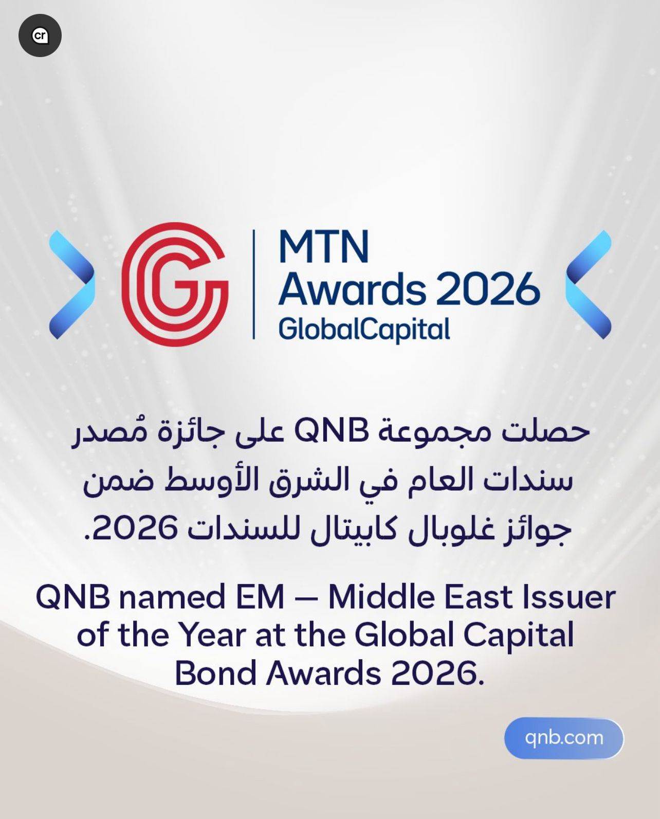 مجموعة QNB تحصد جائزة مُصدر سندات العام في الشرق الأوسط لعام 2026 من GlobalCapital