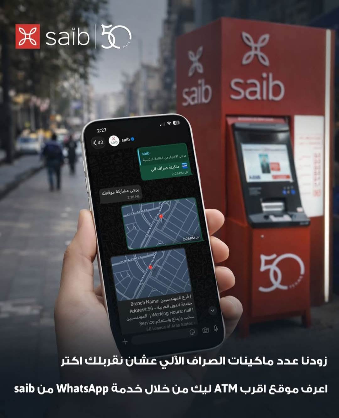 بنك saib يتيح معرفة أقرب ماكينة ATM عبر WhatsApp for business