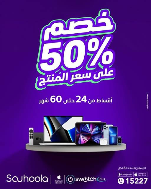 • خصم فوري يصل إلى 50% على أي منتج من Switch Plus.