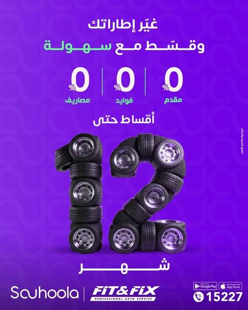 "سهولة" تتيح تقسيط بدون فوائد لشراء إطارات سيارتك من Fit & Fix