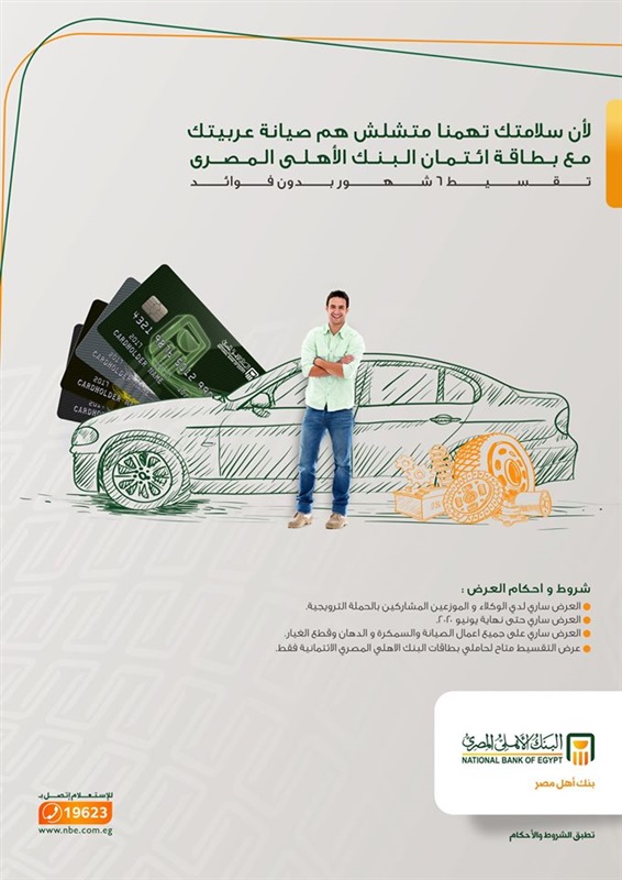 صيانة سيارتك بالتقسيط وبدون فوائد.. مع بطاقات ائتمان الأهلي المصري