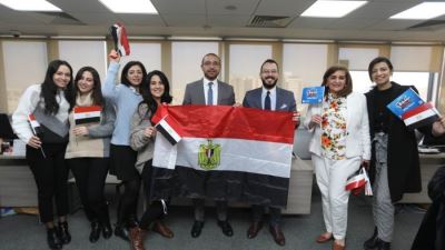 بنك قناة السويس يوزع أعلام مصر على العملاء والعاملين بفرعه الرئيسي دعمًا للمنتخب «صور»
